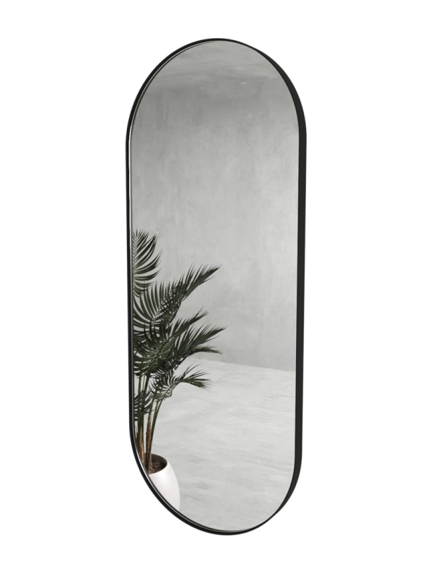 Дизайнерское овальное настенное зеркало Glass Memory Harmony в металлической раме черного цвета в Лиски